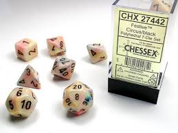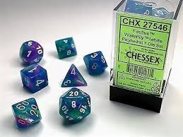 Set of Polyhedral Signature Series Dice from Chessex for classic tabletop RPG and Board Games. Signature? Series is defined as; the most popular colors of dice that were released throughout the years. Set of 7 1 each of d4, d6, d8, d10, d10 percentile, d12, d20