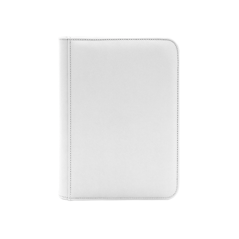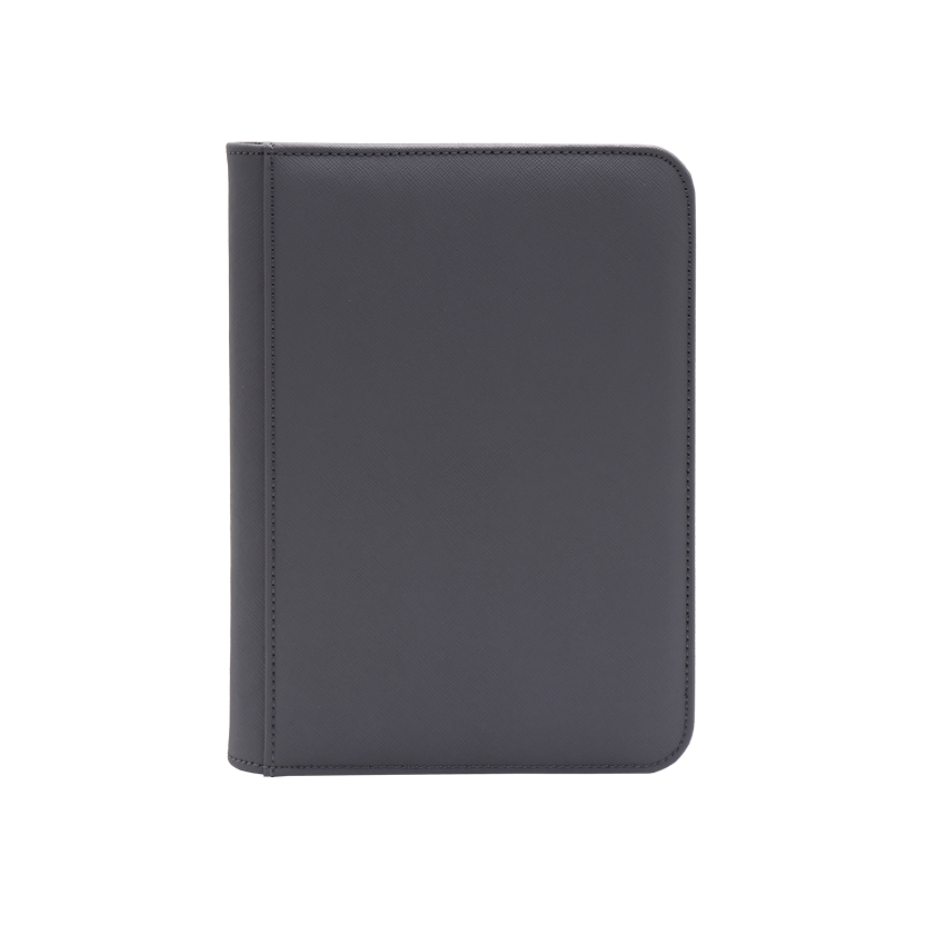They comfortably hold 160 double or single sleeved cards in side loading pockets and utilize an additional flyleaf before the first and after the last page to provide additional protection. The exterior is constructed with the same Saffiano exterior as our Creation Line Deck Boxes with added padding for an extra luxurious feel. We've done away with the band and added a heavy gauge zipper to keep your cards safe!