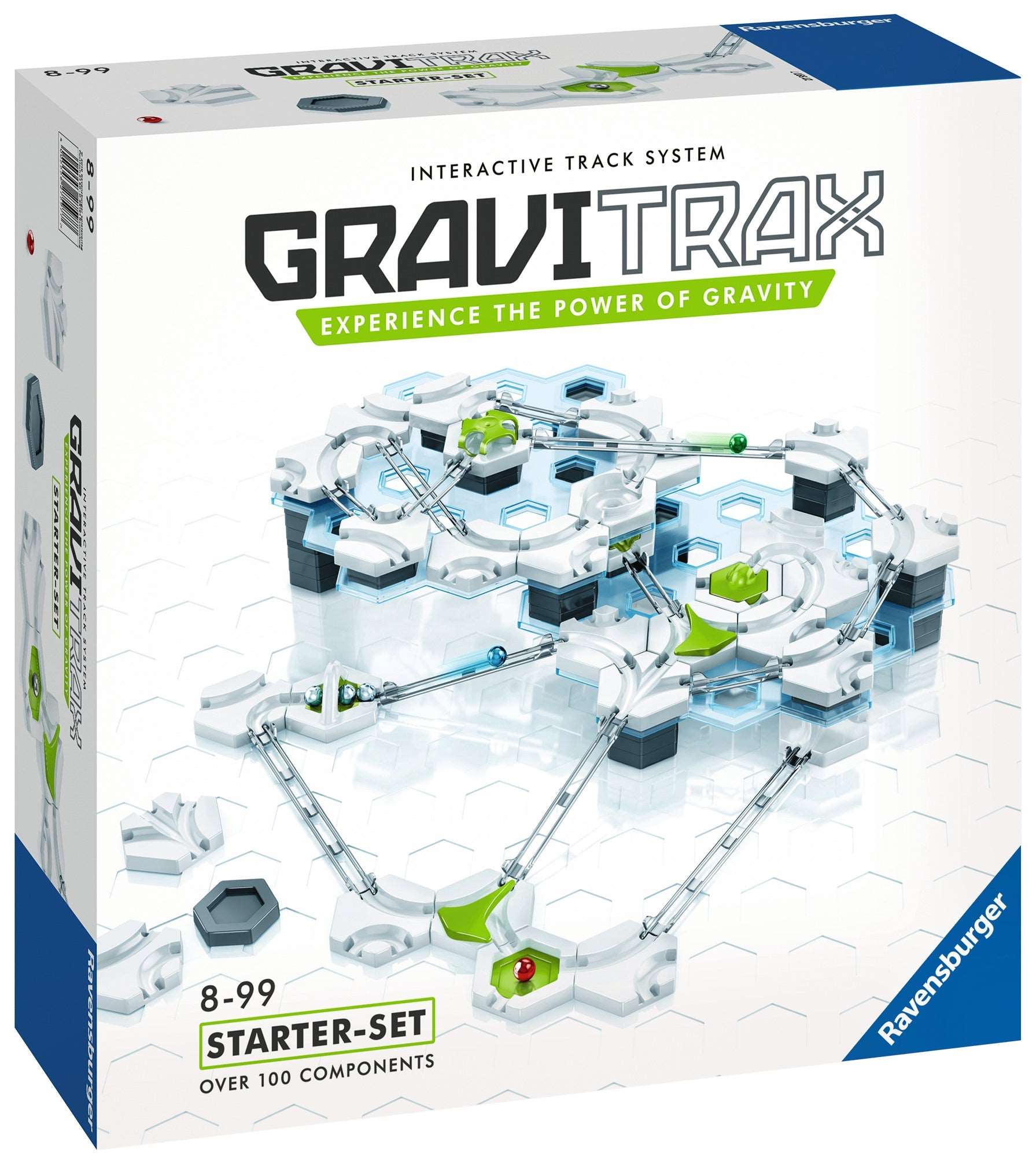 With the GraviTrax interactive track system and marble run, you can design and build your own race tracks and experiment with gravity, magnetism, and kinetics to propel your ball to the finish. With a variety of tiles, levels, tracks and features, you can control the speed of each ball. The open-ended building concept offers endless possibilities to design a different track every time you play. Add flair and speed to your tracks with expansion sets and action accessories. GraviTrax is a fun STEM toy for boys and girls that comes with over 100 pieces and 18 different construction elements. The GraviTrax starter set offers everything you need to begin building your own action-packed track systems. Discover how the laws of physics affect the track your ball takes with curves, crosses, freefalls and even a cannon. Experiment using different heights and angles to control the speed of the ball. The included tasks and construction plans introduce you to the world of GraviTrax. Or let your creativity take over and begin constructing your own track designs from scratch.