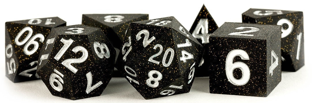 Sharp Edge Silicone Rubber Dice Sets include 7 Dice, include:• 4-sided (d4)• 6-sided w/numbers (d6)• 8-sided (d8)• 10-sided (d10 numbered 0-9)• Tens 10 (10-sided die numbered 00-90)• 12-sided (d12) and 20-sided (d20)